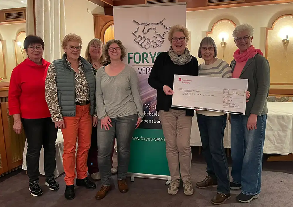 Der FOR YOU Verein e. V. wurde im November 2021 aus der überregional agierenden Stiftung heraus gegründet. Er hat es sich zur Aufgabe gemacht, den Hospizgedanken und die Sterbebegleitung dort zu unterstützen, wo sie im Raum Koblenz bisher noch wenig vertreten ist.